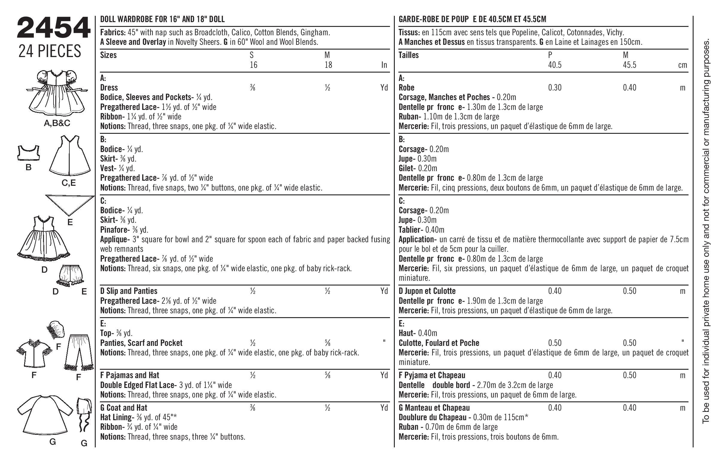 Simplicity Sewing Pattern 2454 Size A 16 034 18 034 Doll Clothes Dress Skirt Coat Pant Ebay